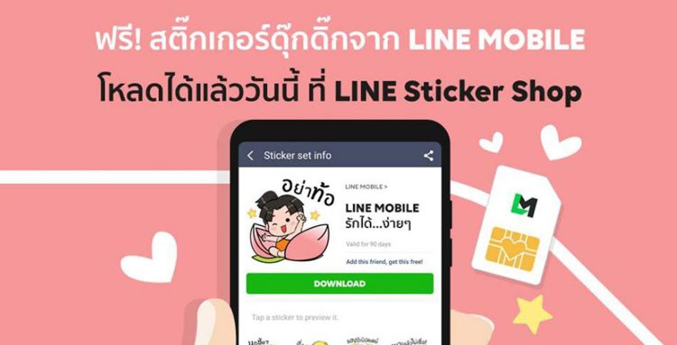 LINE MOBILE ซิมมือถือที่ให้ผู้ใช้ โทร แชท เล่นเน็ต ถูกกว่าแน่นอน! จับคาแรคเตอร์จากโฆษณาซีรีส์ชุด “ซิม LINE MOBILE ถูกกว่าแน่นอน!” ลงสติ๊กเกอร์เคลื่อนไหวได้ชุดใหม่ ที่ใครเห็นเป็นต้องรัก ให้ผู้ใช้งาน LINE ดาวน์โหลดไปใช้กันฟรีๆ เพียงแอดไลน์ @LINEMOBILETH ดาวน์โหลดได้ตั้งแต่วันนี้ – 26ก.ย. 2561 นี้เท่านั้น!