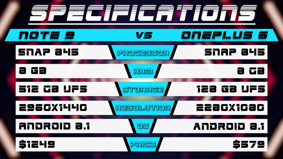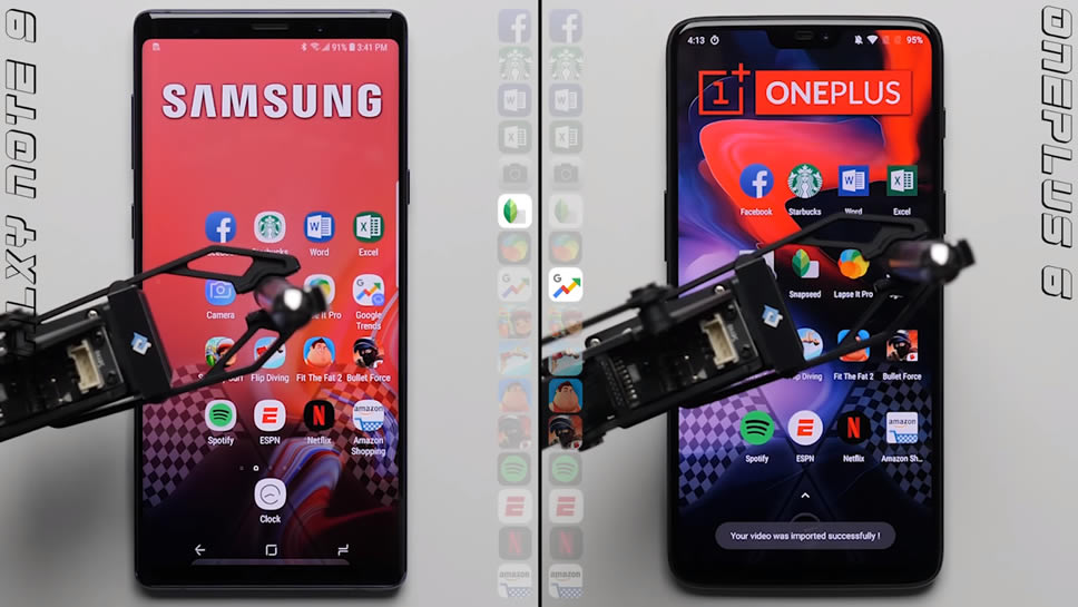 Samsung Galaxy Note 9 ที่ถูก PhoneBuff นำมาทดสอบ เป็นเวอร์ชั่นที่ใช้ชิปประมวลผล Qualcomm Snapdragon 845 มากับ RAM 8GB จับคู่กับ ROM 512GB ทำงานบน Android 8.1 Oreo ถือว่าสูสีกับอีกมุมหนึ่ง เพราะ OnePlus 6 ใช้ชิปประมวลผลรุ่นเดียวกัน RAM เท่ากัน แต่มากับ ROM 128GB และราคาถูกกว่า Galaxy Note 9 มากกว่าครึ่งหนึ่ง