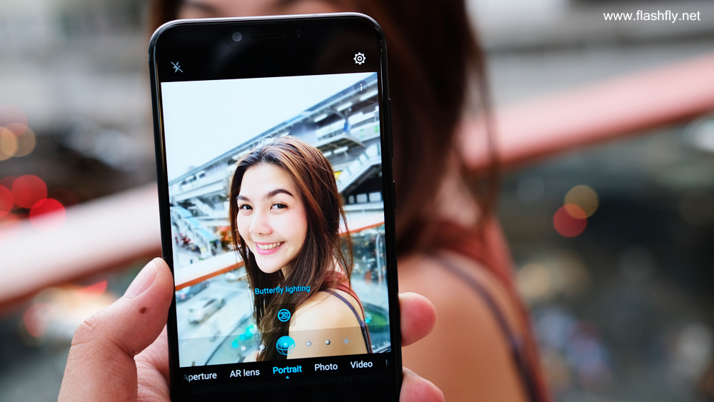 สำหรับกล้องด้านหน้า 16 ล้านพิกเซล รองรับโหมดถ่ายภาพเซลฟี่แบบ AI Portrait ช่วยจัดแสงให้เหมือนถ่ายภาพในสตูดิโอ อีกทั้งยังรองรับฟีเจอร์ Face Unlock ปลดล็อคสมาร์ทโฟนด้วยการสแกนใบหน้า แต่ก็ยังมีเซ็นเซอร์สแกนลายนิ้วมือมาให้ด้วย