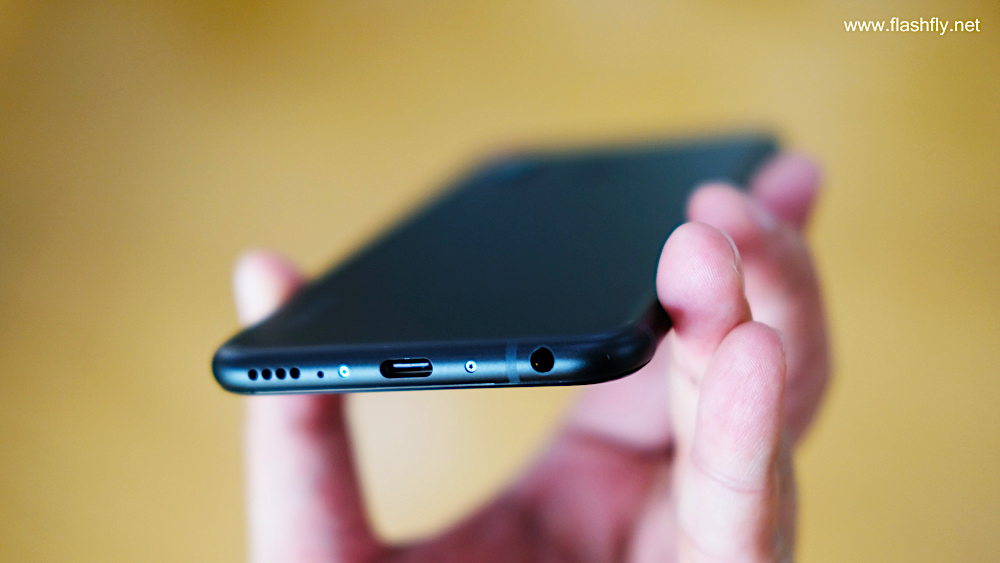 ด้านล่างประกอบไปด้วยช่องเสียบแจ็คหูฟัง 3.5 มิลลิเมตร พร้อมรองรับระบบเสียง 3 มิติ, พอร์ตเชื่อมต่อ USB Type-C ไมโครโฟน และลำโพง