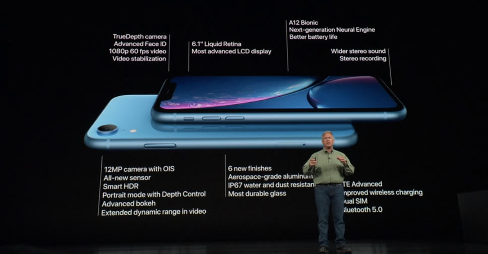 iPhone Xr ยังได้รับชิปประมวลผล A12 แบบเดียวกับ iPhone Xs หรือ Xs Max และกันน้ำได้ในระดับ IP67 โดยจะเริ่มเปิดรับจองในวันที่ 19 ตุลาคม เริ่มจัดส่งวันที่ 26 ของเดือนเดียวกัน ราคาเริ่มต้น 749 ดอลล่าร์สหรัฐ หรือราว 24,500 บาท