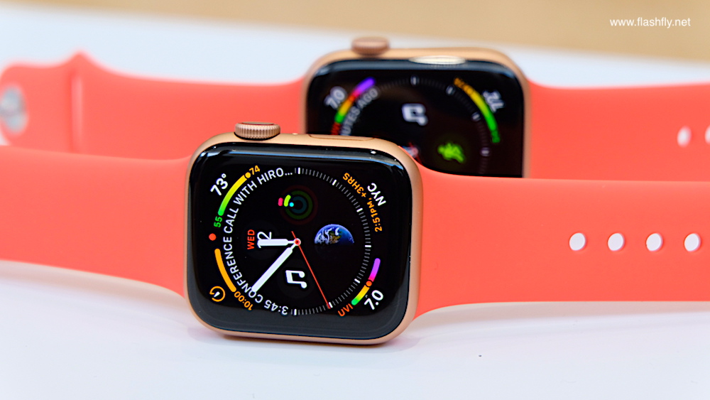 สุดท้ายกับ Apple Watch Series 4 ที่ได้รับการออกแบบใหม่หมด จอแสดงผลมีขนาดใหญ่กว่าเดิมถึง 30% โดยมี 2 ขนาด ได้แก่ 40 มม. และ 44 มม. แน่นอนว่าเมื่อหน้าจอใหญ่ขึ้นก็มีอินเทอร์เฟซใหม่ที่แสดงข้อมูลรายละเอียดที่มากกว่าเดิมได้มากขึ้นจึงสามารถแสดงไอคอนแอพและฟอนต์ที่ใหญ่และอ่านง่ายกว่าแบบเดิม