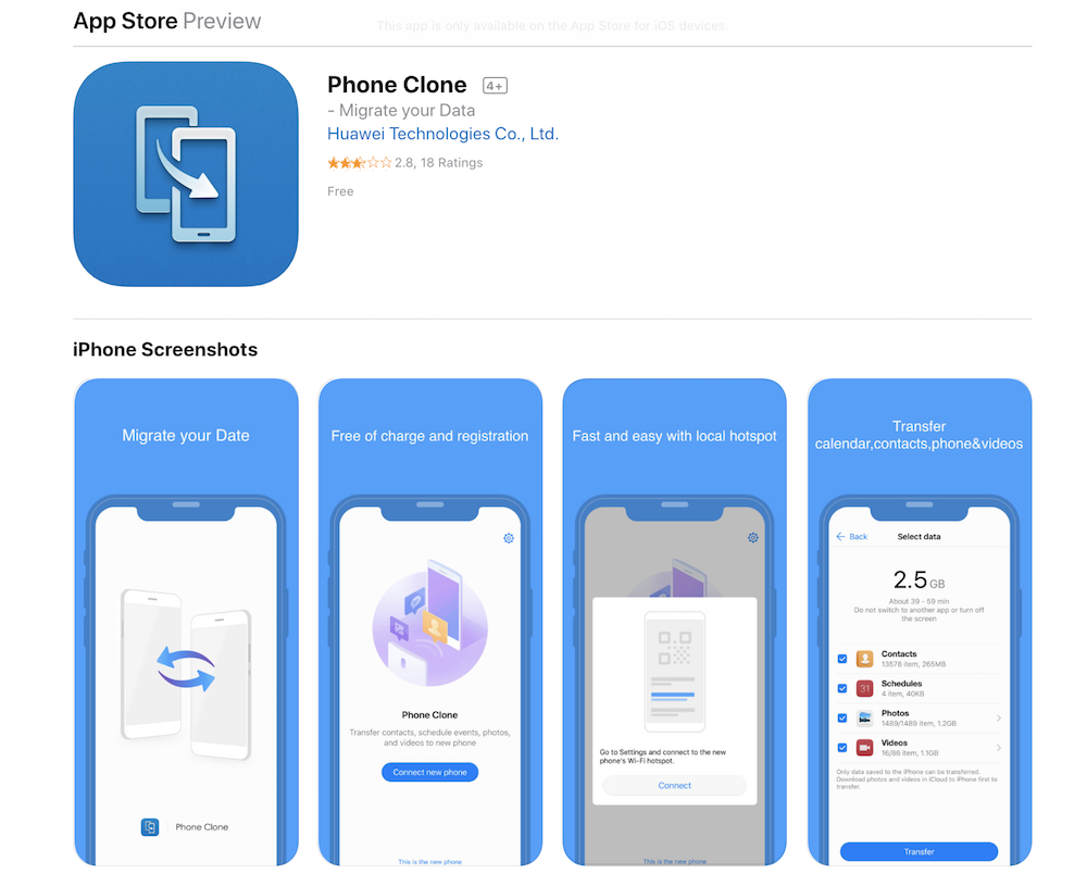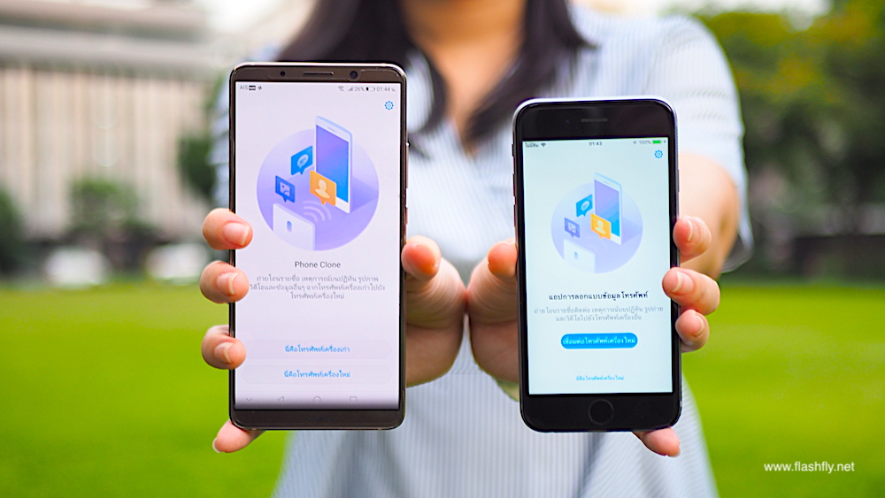 1.ดาวน์โหลดแอพ Phone Clone และติดตั้งลงใน iPhone ที่ใช้ iOS 6.0 ขึ้นไป และสมาร์ทโฟน Huawei ซึ่งปกติแล้วสมาร์ทโฟน Huawei ทุกรุ่นจะมีแอพ Phone Clone ติดตั้งมาให้ตั้งแต่โรงงานอยู่แล้ว ถ้าใครไม่มีสามารถดาวน์โหลดจากลิงค์ด้านล่างกันก่อนได้