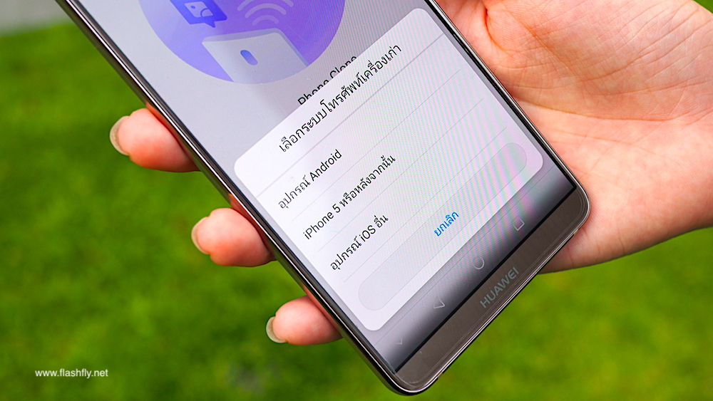 ในที่นี่เราต้องการโอนย้ายข้อมูลจาก iPhone ไปยังสมาร์ทโฟน Huawei ดังนั้นให้เลือกเมนู “นี่คือโทรศัพท์ใหม่” ที่แอพฯ Phone Clone บนสมาร์ทโฟน Huawei จากนั้นจะมีอีกสามเมนูปรากฎขึ้นมา ให้เราเลือกที่ “อุปกรณ์ iOS อื่น”