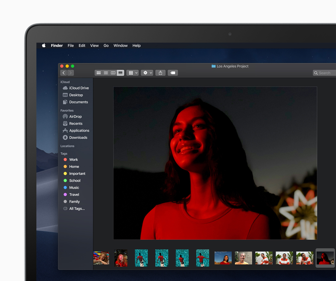 Finder ใน macOS Mojave มาพร้อมมุมมอง Gallery แบบใหม่หมดที่ให้ผู้ใช้สามารถกวาดตาดูเนื้อหาในไฟล์แบบคร่าวๆ ได้ ส่วนหน้าต่างแสดงตัวอย่างจะแสดงเมตาดาต้าของไฟล์ได้อย่างครบถ้วน ช่วยให้การจัดการไฟล์สื่อรูปแบบต่างๆ กลายเป็นเรื่องง่ายยิ่งขึ้น คุณสมบัติ “การทำงานด่วน” จะอยู่ในแผงการแสดงตัวอย่าง ผู้ใช้จึงสามารถทำอะไรหลายๆ อย่างจากใน Finder ได้ทันที เช่น การสร้าง PDF แบบต้องใส่รหัสผ่าน และการใช้แอ็คชั่น Automator กับไฟล์ Quick Look ช่วยให้ผู้ใช้หมุนและครอปตัดรูปภาพ ทำเครื่องหมายใน PDF และตัดต่อวิดีโอและคลิปเสียงได้ โดยผู้ใช้สามารถเข้าใช้งานได้อย่างง่ายดายเพียงแค่เลือกไฟล์แล้วกดสเปซบาร์บนคีย์บอร์ด