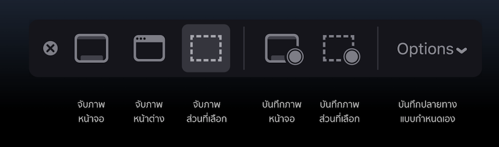 ภาพถ่ายหน้าจอมีส่วนควบคุมบนหน้าจอที่ช่วยให้เรียกใช้ตัวเลือกต่างๆ สำหรับการบันทึกภาพหน้าจอได้ทันที และยังมาพร้อมความสามารถใหม่ในการอัดวิดีโออีกด้วย ใช้งานคุณสมบัตินี้ด้วยการเปิดยูทิลิตี้ภาพถ่ายหน้าจอใหม่ หรือคลิก Shift-Command-5 เพื่อเข้าใช้ชุดคำสั่งในการจับภาพนิ่งบนหน้าจอหรืออัดวิดีโอบนจอภาพ Mac ไม่ว่าจะเป็นตัวเลือกการตั้งค่าเวลาถ่ายภาพหรือแม้แต่การเลือกว่าคุณอยากเก็บภาพถ่ายหน้าจอ