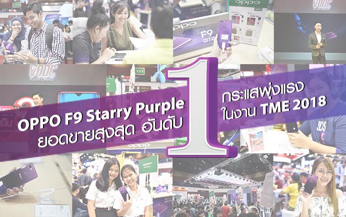 ฮิตถล่มทลาย!! OPPO F9 Starry Purple วางขายวันแรก ทำยอดขายสูงสุดเป็นอันดับ 1 ภายในงาน Thailand Mobile Expo 2018