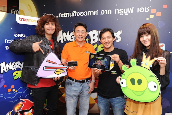 ทรูมูฟ เอช โดย นายสุภกิจ วรรธนะดิษฐ์ (ที่ 2 จากซ้าย) หัวหน้าคณะผู้บริหารด้านการพาณิชย์ ธุรกิจโมบายล์ บมจ. ทรู คอร์ปอเรชั่น ร่วมกับ โรวิโอ โดย นายบิเจย์ กุรัง (ที่ 2 จากขวา) ผู้อำนวยการฝ่ายบริหารธุรกิจลูกค้า (Key Account Director) บริษัท โรวิโอ เอ็นเตอร์เทนเมนต์ ผู้ให้บริการด้านสื่อบันเทิงที่อยู่เบื้องหลังเกม Angry Birds สุดยอดเกมฮิตอันดับ 1 ทั่วโลก ประกาศความร่วมมืออย่างเป็นทางการในไทย เปิดตัว Angry Birds Space โดยมีศิลปิน AF7 น้ำแข็ง และนัตตี้ ร่วมเปิดตัวเกมใหม่ล่าสุด ชวนลูกค้าทรูมูฟ เอช โหลดเกมเร็วกว่าบนเครือข่าย 3G+ ด้วยความเร็วสูงสุด 42 Mbps* ใช้ได้จริงวันนี้ ครอบคลุมครบ 77 จังหวัด 843 อำเภอ 5,158 ตำบล ลูกค้าทรูมูฟ เอช ดาวน์โหลด Angry Birds Space ได้แล้ววันนี้ ผ่าน App Store สำหรับ iOS, Google Play สำหรับระบบปฏิบัติการ Android เพียงค้นหาคำว่า “Angry Birds Space” หรือดาวน์โหลดที่ space.angrybirds.com
