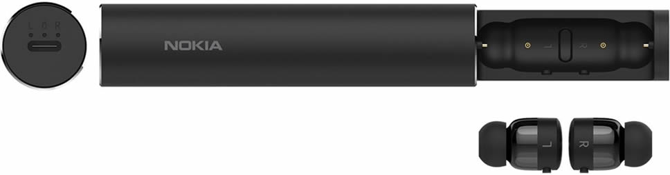 Nokia True Wireless Earbuds มาพร้อมหูฟังไร้สาย 2 ข้าง ขนาด 22.3 x 14 มิลลิเมตร รองรับการเชื่อมต่อ Bluetooth 5.0 ใช้สนทนาได้นานสูงสุด 4 ชั่วโมง ฟังเพลงนานสูงสุด 3.5 ชั่วโมง สแตนด์บายนานสูงสุด 70 ชั่วโมง ส่วนกล่องชาร์จมีขนาด 100 x 22 มิลลิเมตร สามารถชาร์จแบตเตอรี่ให้กับหูฟังได้ 3 รอบ