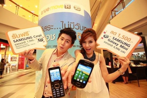 ทรูมูฟ เอช ต้อนรับลูกค้าฮัทช์ แบบเติมเงิน มอบแพ็กเกจพิเศษสุดคุ้ม โทรจุใจ ได้เครื่องใหม่เบอร์เดิม รับทันทีโทรศัพท์มือถือ SAMSUNG Capsi มูลค่า 1,990 บาท* หรือเลือกรับส่วนลด 1,500 บาท แลกซื้อ SAMSUNG Galaxi Mini ราคาปกติ 4,990 บาท เพียงสมัครแพ็กเกจเสริมเหมาจ่าย 1,500 บาท โทรได้ 1,200 นาที และ SMS 120 ครั้ง และยังสามารถโอนยอดเงินคงเหลือจากฮัทช์มาใช้ได้เต็มจำนวน สมัครได้แล้ววันนี้ – 30 เมษายน 2555