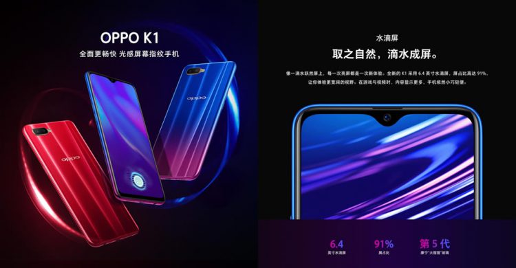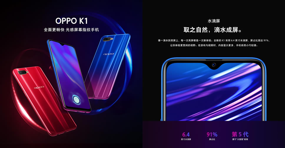 OPPO เปิดตัวสมาร์ทโฟน K1 อย่างทางการแล้วในประเทศจีน พร้อมรับจองทันทีก่อนเริ่มจัดส่งตั้งแต่วันที่ 19 ตุลาคม 2018 เป็นต้นไป มากับดีไซน์ Super Full Screen ที่มีขอบจอบางเฉียบ โดยใช้รอยบากรูปทรงหยดน้ำ บอดี้สวยงามด้วยการไล่ระดับสี
