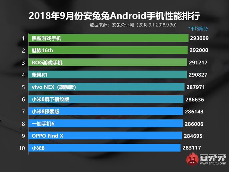 สมาร์ทโฟนในครอบครับ Mi 8 ของ Xiaomi ได้รับการอัพเดท MIUI 10 ในเดือนกันยายนที่ผ่านมา ช่วยอัพเกรดประสิทธิภาพของจีพียู ส่งผลให้คะแนนเฉลี่ยของ Mi 8 series สูงขึ้น และเข้ามาอยู่ใน 10 อันดับบนสุดถึง 3 รุ่น ขณะที่ Asus ROG Phone เป็นเกมมิ่งสมาร์ทโฟนอีกรุ่นหนึ่งที่น่าจับตามอง และได้เข้ามาอยู่ในการจัดอันดับเป็นครั้งแรก ส่วน Black Shark เกมมิ่งสมาร์ทโฟนจาก Xiaomi อยู่อันดับ 1 มานาน 4 เดือนติดต่อกันแล้ว