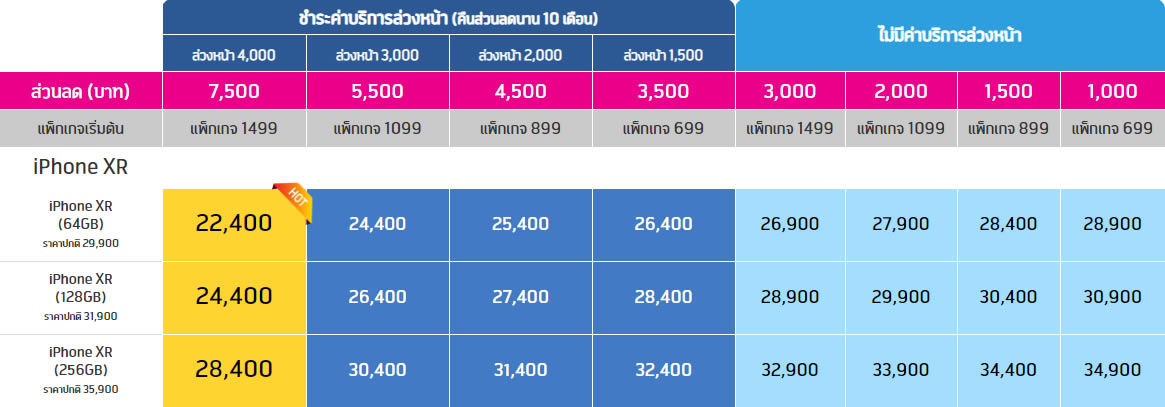 ผู้ให้บริการฯ รายใหญ่ในประเทศไทย ทั้ง AIS, Dtac และ TrueMove H เริ่มเปิดให้ผู้ที่สนใจ สั่งจอง iPhone XR อย่างทางการแล้ว ตั้งแต่วันที่ 19 ตุลาคม 2561 เป็นต้นไป พร้อมออกโปรโมชั่นพิเศษมาแข่งขันกันแบบไม่มีใครยอมใคร ส่วนค่ายไหนจะมีข้อเสนออะไรบ้าง มาติดตามกันได้เลย