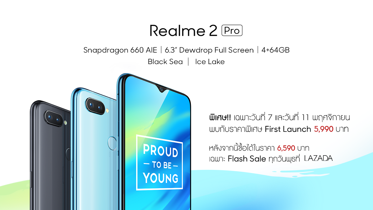 เพื่อให้ผู้ใช้ได้สัมผัสประสบการณ์กับ  Realme 2 Pro 4+64GB ก่อนใคร และขอบคุณสำหรับการติดตามรอคอย ทาง Realme จะมีการจัด Flash sale ในวันที่ 7 พฤศจิกายนนี้ และจะมีการวางจำหน่ายอย่างเป็นทางการผ่านทาง Lazada ในวันที่ 11 พฤศจิกายน 2561 โดยทั้งสองวันนี้มาพร้อมกับราคาพิเศษเพียงแค่ 5,990 บาท