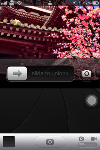 จากนั้นเมื่อกลับมาที่หน้า Lock Screen ก็จะสามารถใช้งานได้เหมือน iOS 5.1 แล้วถ่ายรูปได้อย่างรวดเร็ว