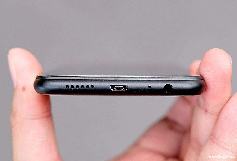 ด้านล่างมีช่องเสียบหูฟังแบบ 3.5 มิลลิเมตร ไมโครโฟน พอร์ต microUSB และลำโพงเสียงภายนอก