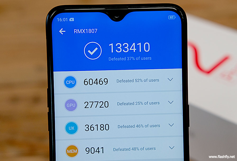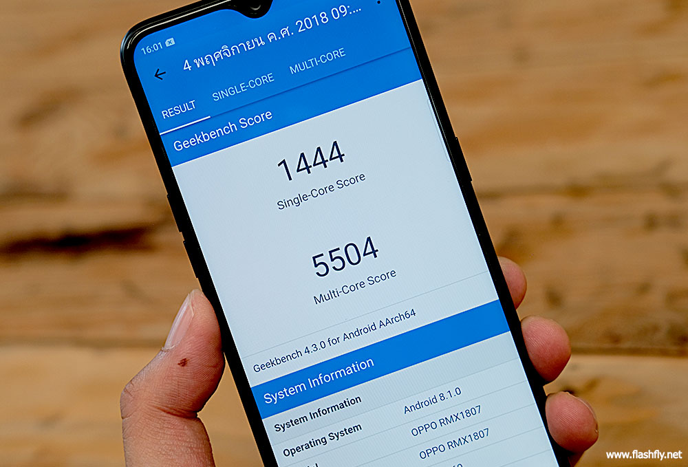 ทดสอบด้วยโปรแกรม AnTuTu Benchmark ได้ 133410 คะแนน ส่วนการทดสอบด้วยโปรแกรม Geekbench 4 Single-Core ได้ 1444 คะแนน Multi-Core ได้ 5504 คะแนน เล่นเกม ROV ได้ลื่นไหลระดับทะลุ 60 FPS เลยทีเดียว โดยเฟรมเรทจะวิ่งเฉลี่ยอยู่ที่ 59 FPS ถึง 61 FPS ถือว่าน่าประทับใจมากๆ