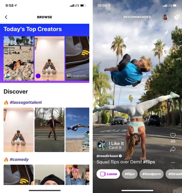 Facebook เปิดตัวแอพพลิเคชั่น Lasso ซึ่งแยกออกมาต่างหาก ไม่ได้เป็นเพียงฟีเจอร์ใน Facebook และถูกมองว่าเป็นการลอกเลียนไอเดียของแอพพลิเคชั่น TikTok ที่กำลังได้รับความนิยมอยู่ในขณะนี้ ตามรายงานของ TechCrunch