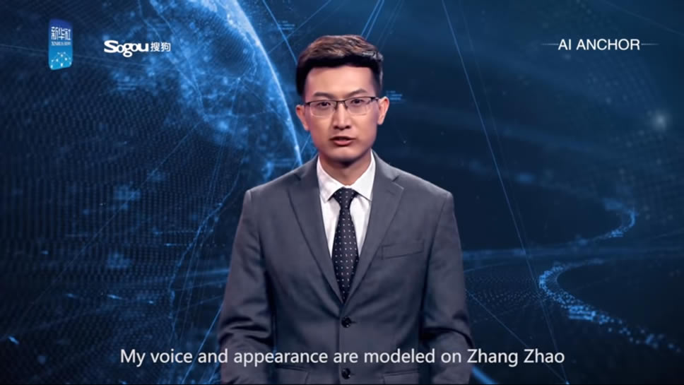 สำนักข่าว Xinhua จับมือกับ Sogou เบราว์เซอร์และเครื่องมือค้นหา ในประเทศจีน เปิดตัวผู้ประกาศข่าวเสมือนจริง ที่งาน World Internet Conference โดยใช้ประโยชน์จากเทคโนโลยี AI (Artificial Intelligence) สามารถรายงานข่าวได้ตลอด 24 ชั่วโมง
