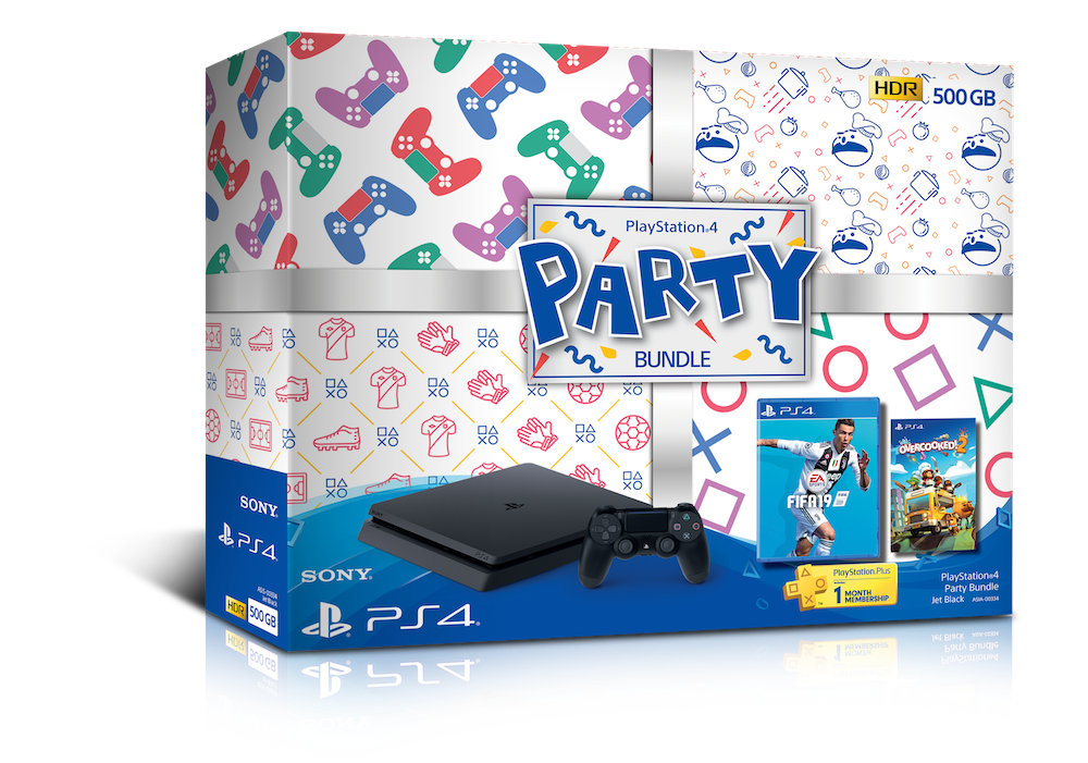 สำหรับ “PlayStation®4 Party Bundle” ประกอบด้วย เครื่องเกมคอนโซล PS4™ สี Jet Black ความจุ 500GB ในราคา 12,990 บาท มาพร้อมกับเกม PS4™ ที่เหมาะสำหรับการเล่นกับเพื่อนๆหรือครอบครัวอันได้แก่เกม FIFA 19 (English/Chinese Version, Disc) และOvercooked! 2 (English/Korean/Japanese/Simplified Chinese Version, Digital)