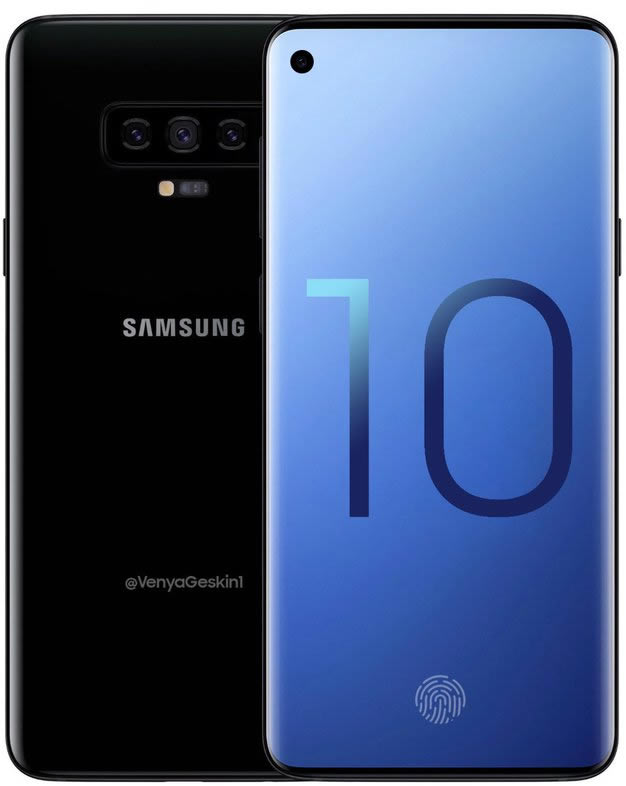Ben Geskin อ้างว่า Samsung Galaxy S10 รุ่นล่างสุด จะใช้จอแสดงผล Infinity-O ซึ่ง Samsung ได้เปิดตัวเมื่อสัปดาห์ที่แล้ว มีจุดเด่นที่ดีไซน์ไร้ขอบ ไร้รอยบาก โดยเจาะรูไว้ที่มุมบน เพื่อฝังกล้องเซลฟี่ มาพร้อมกล้องคู่หลัง และติดตั้งเซ็นเซอร์แกนลายนิ้วมือไว้ที่ขอบด้านข้าง
