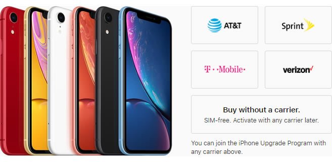 Apple Store ของสหรัฐอเมริกา เปิดให้ลูกค้าทำรายการสั่งซื้อ iPhone XR ในรูปแบบ SIM-free แล้ว ซึ่งเป็นเครื่องเปล่า ไม่ผูกสัญญากับผู้ให้บริการเครือข่ายรายใด ขณะที่ iPhone XS สามารถซื้อแบบ SIM-free ได้ทันทีตั้งแต่วันแรกของการวางจำหน่าย