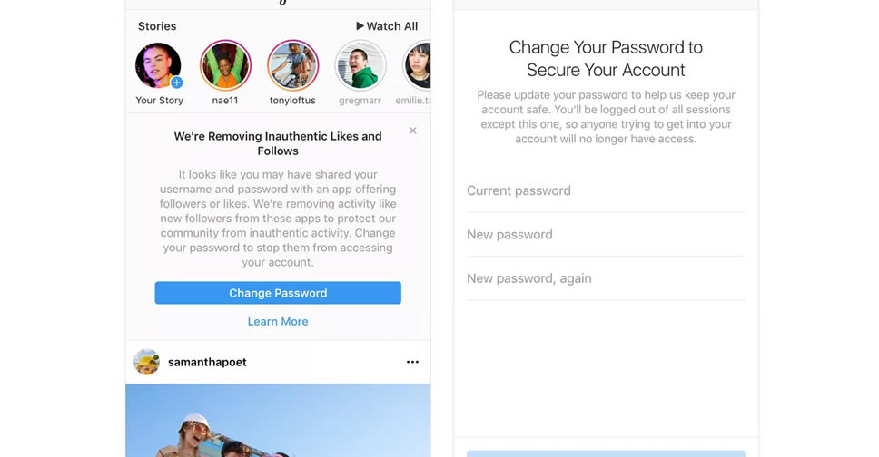 Instagram ประกาศลบการกดถูกใจและการติดตาม ในบัญชีที่มีการใช้บริการจากแอพบุคคลที่สาม ซึ่งเป็นการละเมิดข้อตกลงในการให้บริการของแพลตฟอร์ม ตามที่ Instagram ได้ประกาศไว้ในข้อกำหนดการใช้งาน
