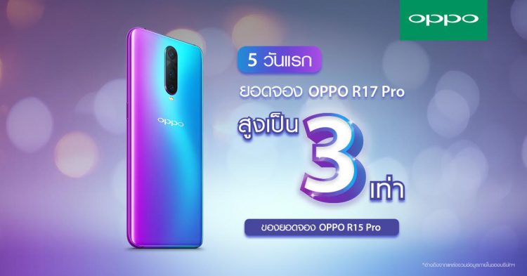 ได้รับกระแสดีเกินคาดจริงๆ สำหรับยอดจอง OPPO R17 Pro ที่เปิดให้จอง ไปตั้งแต่วันที่ 17 พฤศจิกายน ที่ผ่านมา เพียง 5 วันแรกยอดจองสูงเป็น 3 เท่า! ของ OPPO R15 Pro