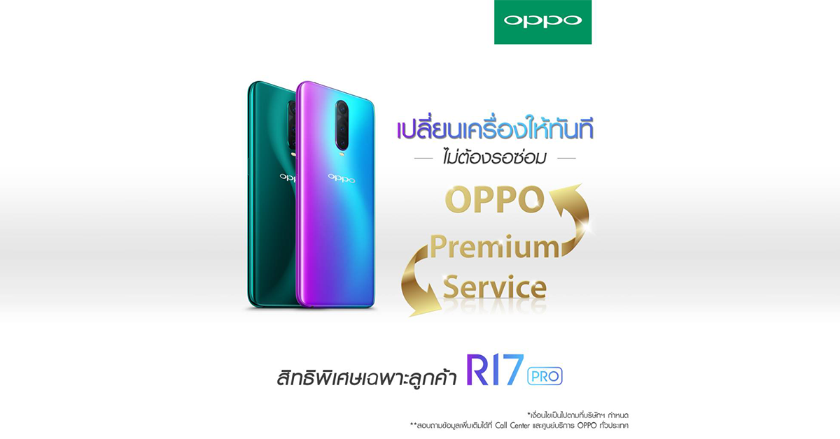 ตบท้ายด้วยบริการสุดพิเศษกับ OPPO Premium Service สามารถเปลี่ยนเครื่องได้ทันทีถ้าเครื่องมีปัญหา