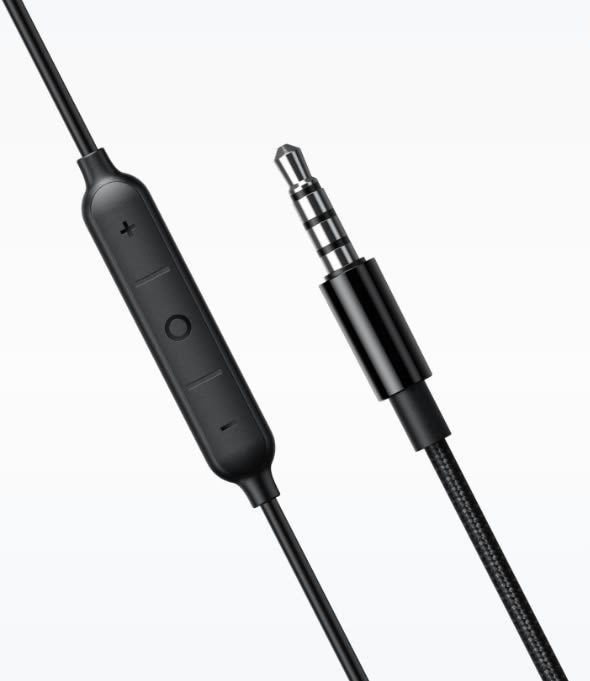 Realme Buds Earphones ใช้สายถักจากวัสดุเส้นใยเคฟลาร์ ซึ่งมีทั้งความทนทานและป้องกันสายพันกันได้เป็นอย่างดี โดยมีความยาวสาย 1.25 เมตร มาพร้อมรีโมท 3 ปุ่ม ไมโครโฟนในตัว สำหรับควบคุมเพลง การโทร รวมถึงใช้งาน Google Assistant
