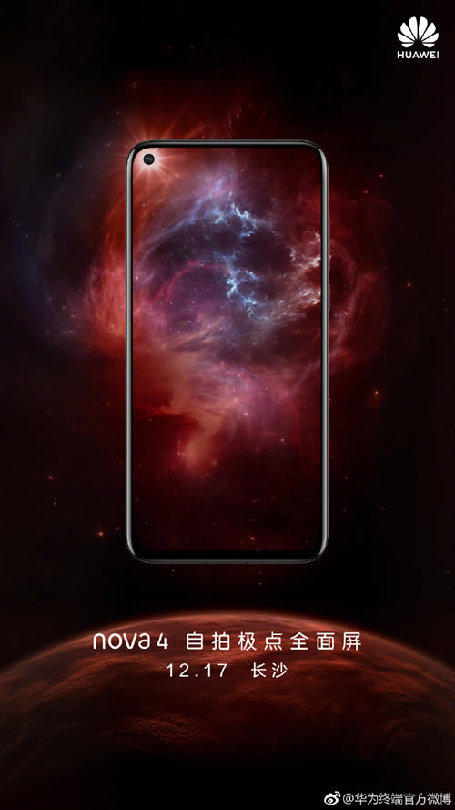 Huawei ประกาศเปิดตัวสมาร์ทโฟน Nova 4 อย่างทางการ ในวันที่ 17 ธันวาคมนี้ พร้อมปล่อยรูปภาพทีเซอร์ออกมาแล้ว ยืนยันว่าสมาร์ทโฟนรุ่นใหม่ล่าสุด จะถูกเจาะรูไว้ที่มุมบนจอแสดงผล เพื่อฝังกล้องเซลฟี่ลงไป โดยเป็นดีไซน์แบบเดียวกับ Infinity-O ของ Samsung ที่มีแผนจะนำมาใช้กับสมาร์ทโฟนของตัวเองเช่นกัน