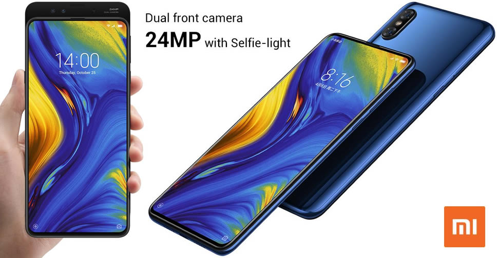 Xiaomi Mi MIX 3 มากับจอแสดงผล OLED ขนาด 6.39 นิ้ว อัตราส่วนภาพ 19.5:9 ให้สัดส่วน screen-to-body ถึง 93.4% ใช้ชิปประมวลผล Qualcomm Snapdragon 845 ทำงานบน MIUI 10 กล้องคู่เซลฟี่แบบสไลด์ 24+2 ล้านพิกเซล กล้องคู่หลัง 12+12 ล้านพิกเซล ความจุแบตเตอรี่ 3200mAh (แถมอุปกรณ์ชาร์จไร้สาย 10W มาให้ในกล่อง)