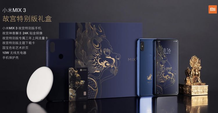 Xiaomi เริ่มวางจำหน่ายสมาร์ทโฟนรุ่นพิเศษ Xiaomi Mi Mix 3 Forbidden City Edition ในประเทศจีนอย่างทางการแล้ว มากับวัสดุกระจกแซฟไฟร์สีน้ำเงิน พร้อมลาย Xie Zhi สีทอง ซึ่งเป็นสัตว์ในตำนานของชาวจีน ส่วนสเปกภายในเหมือนกับ Mi Mix 3 รุ่นปกติ แต่ได้รับ RAM 10GB จับคู่กับ ROM 256GB