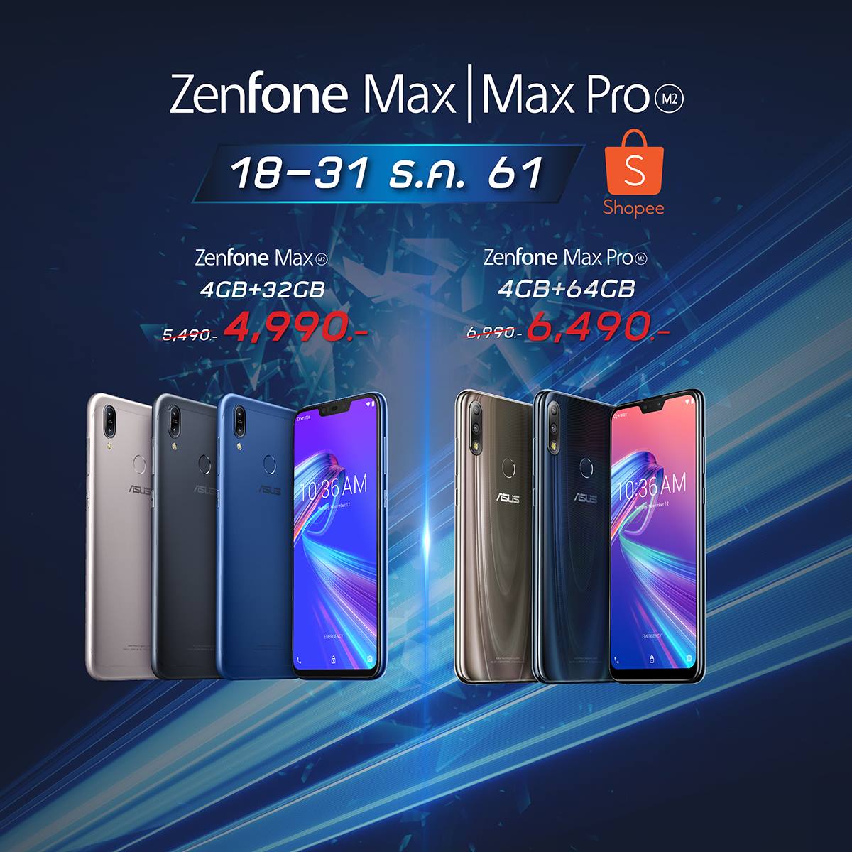 - รุ่น Ram 4 Rom 32 จะวางจำหน่ายผ่านเว็บไซต์ Shopee เท่านั้น http://bit.ly/2Lef7Dg ในราคา 5,490 บาท (ผู้ที่สั่งจองในช่วง Pre-order ระหว่างวันที่ 18-31 ธันวาคม 61 ใช้ Code ‘Asusm2’ รับส่วนลด 500 บาท)
