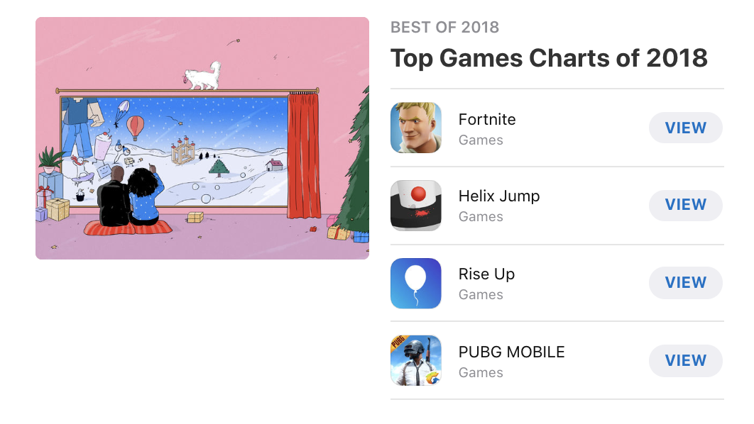 ในปีนี้ เกมประเภทเดียวกับ Battle Royale อาทิ Fortnite และ PUBG Mobile คลองตลาดเกมทั่วโลกด้วย ความตื่นเต้น และแอคชั่นที่ค้นหาผู้เล่นที่ยืนหยัดอยู่เป็นคนสุดท้าย ในขณะที่แอพสุดสร้างสรรค์อย่าง Fabulous, Shine, 10% Happier และ Headspace ทำให้การดูแลสุขภาพเป็นที่สนใจไปทั่วโลก และทำให้คนทั่วไป เข้าถึงข้อมูลการดูแลตนเอง ได้มากกว่าที่เคย