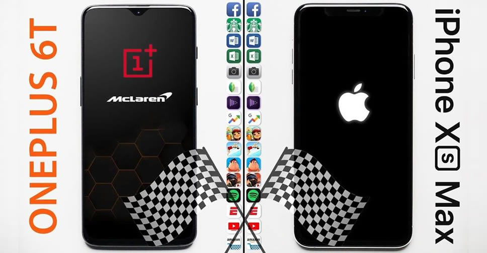 PhoneBuff นำนักฆ่าเรือธงรุ่นล่าสุด OnePlus 6T McLaren Edition มาเปรียบเทียบความเร็วกับ iPhone XS Max เพื่อหาดูว่าระหว่าง 2 รุ่นนี้ รุ่นไหน จะใช้เวลาเปิดเข้าแอพพลิเคชั่นและเกมได้เร็วกว่ากัน โดยใช้แขนกลมาช่วยแตะไอคอนบนหน้าจอเพื่อความยุติธรรม