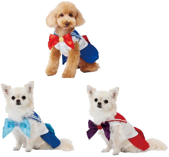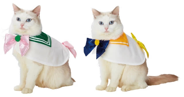 เริ่มกันที่ชุดคอสเพลย์ Sailor Moon ที่ออกแบบตามชุดของ Jupiter กับ Venus สำหรับน้องแมว มีราคา 2,678 เยน หรือราว 790 บาท และในอนาคตจะมีชุดของ Mercury กับ Mars ให้เลือกด้วย ส่วนชุด Sailor Moon สำหรับสุนัขขนาดเล็ก มีราคา 3,218 เยน หรือราว 945 บาท