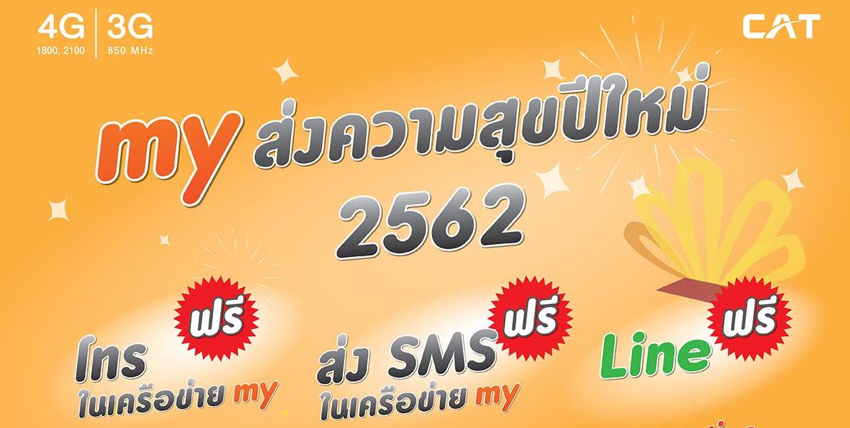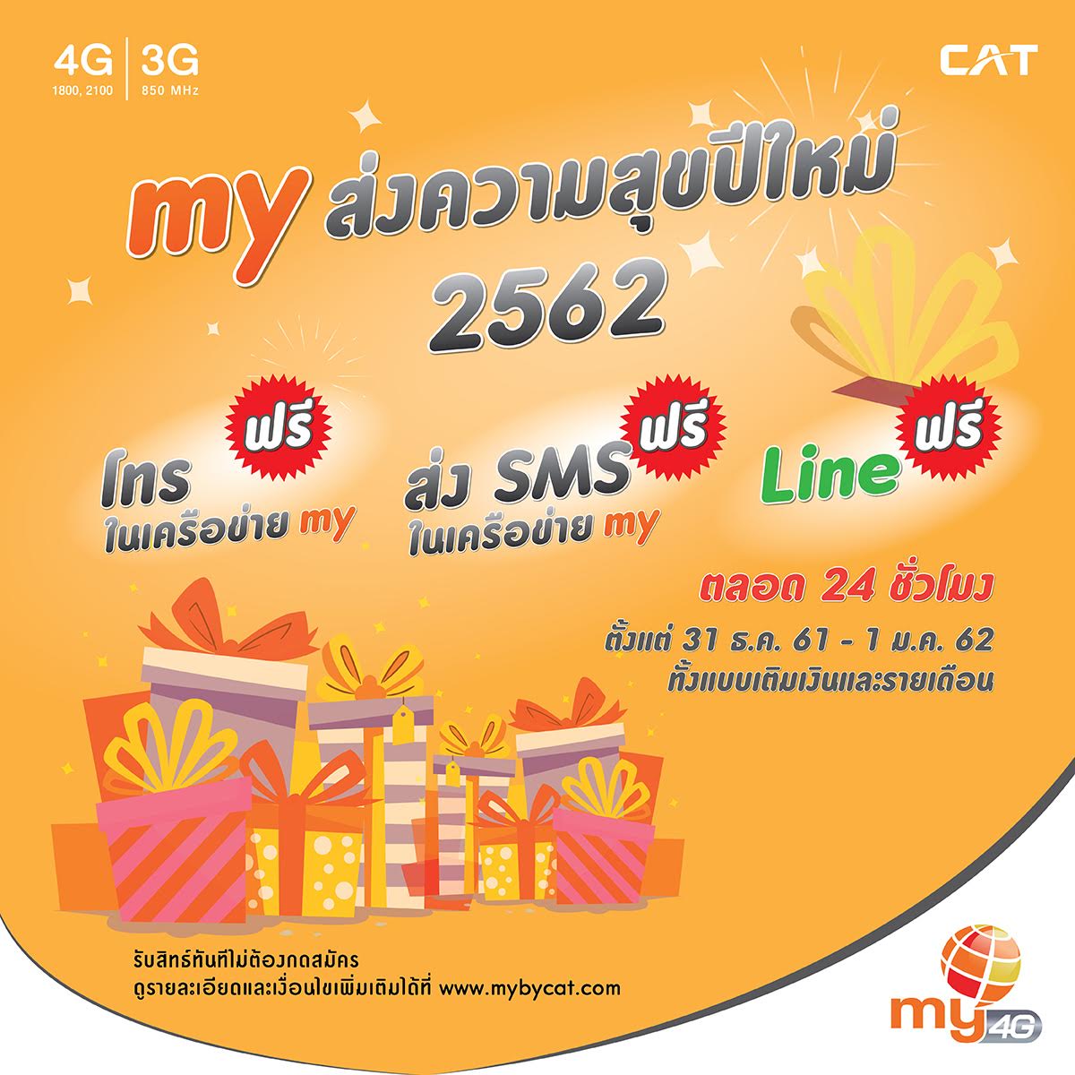 my by CAT มอบของขวัญพิเศษส่งท้ายปี ให้ลูกค้าใช้บริการฟรีข้ามปี โดยสามารถโทรและส่ง SMS ฟรีในเครือข่าย myตลอดจนใช้งานแอปพลิเคชั่น Line ฟรีตลอด 24 ชั่วโมง เพื่อให้ลูกค้า my ได้ส่งต่อความสุขถึงกันและกั