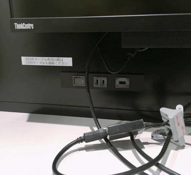 จอมอนิเตอร์มีสาย HDMI และ USB เชื่อมต่อกับสมาร์ทโฟนหรืออุปกรณ์พกพา และใต้จอยังมีช่อง USB Power สำหรับชาร์จแบตเตอรี่ให้กับอุปกรณ์พกพา
