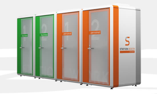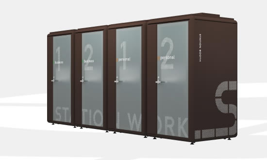 Station Work หรือสำนักงานแคปซูลที่สถานีรถไฟ Shinjuku เป็นห้องขนาดเล็ก ป้องกันเสียงรบกวนจากภายนอกได้ดีในระดับหนึ่ง ภายในประกอบไปด้วยโต๊ะทำงาน มีจอมอนิเตอร์ติดตั้งแบบ Built-in และที่นั่งสำหรับ 1 คน โดยมีพื้นที่เหลือเล็กน้อยสำหรับวางกระเป๋าสัมภาระ 1 ใบ
