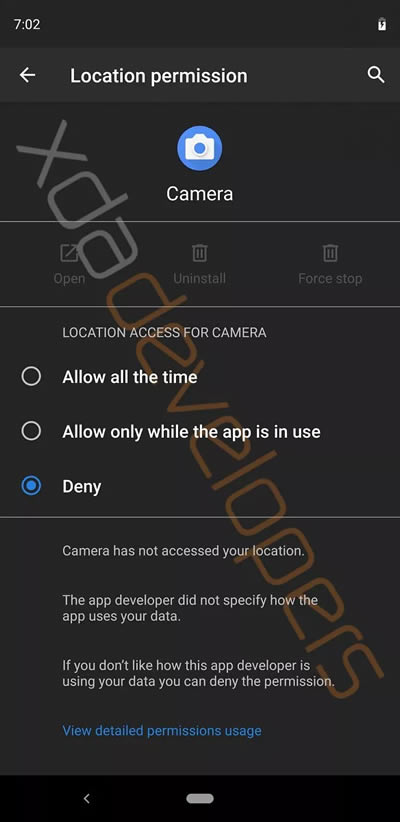Android Q ยังถูกพัฒนาให้ป้องกันความเป็นส่วนตัวของผู้ใช้งานมากยิ่งขึ้น หลังจากเวอร์ชั่นล่าสุด ได้เพิ่มความเข้มงวดเกี่ยวกับการอนุญาตให้เข้าถึงกล้องหรือไมโครโฟนในแอพที่ทำงานอยู่พื้นหลัง แต่ในเวอร์ชั่นใหม่ จะอนุญาตเฉพาะแอพที่กำลังใช้งานอยู่เท่านั้น