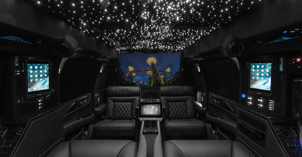 Lexani Motorcars บริษัทที่มีฐานอยู่ในแคลิฟอร์เนีย เผยโฉมรถยนต์ Cadillac Escalade Viceroy Edition 2019 ซึ่งได้รับการตกแต่งมาอย่างหรูหรา ด้วยการซ่อนไฟ LED ไว้บนเพดาน จำนวนหลายดวง เมื่อเปิดแล้วให้ความรู้สึกเหมือนดวงดาวบนท้องฟ้า เบาะนั่งปรับไฟฟ้าหนังแท้สไตล์ยุโรป พร้อมโต๊ะแบบเครื่องบิน สมกับเป็นรถยนต์ระดับ VIP