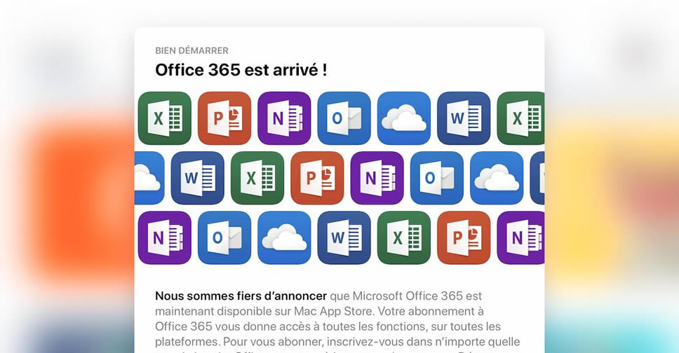 ขณะที่ App Store ของอุปกรณ์ iOS ก็มีการยืนยันว่า Office 365 พร้อมใช้งานแล้วบน Mac App Store ผู้ที่เป็นสมาชิก Office 365 สามารถใช้งานแอพพลิเคชั่นของ Microsoft Office ได้แล้วทุกแพลตฟอร์ม