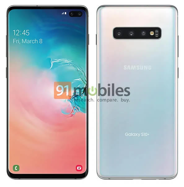Samsung Galaxy S10+ ถูกปล่อยภาพเรนเดอร์ออกมาอีกแล้ว เผยให้เห็นกล้องคู่เซลฟี่ถูกฝังบนจอ กล้องหลัง 3 ตัว