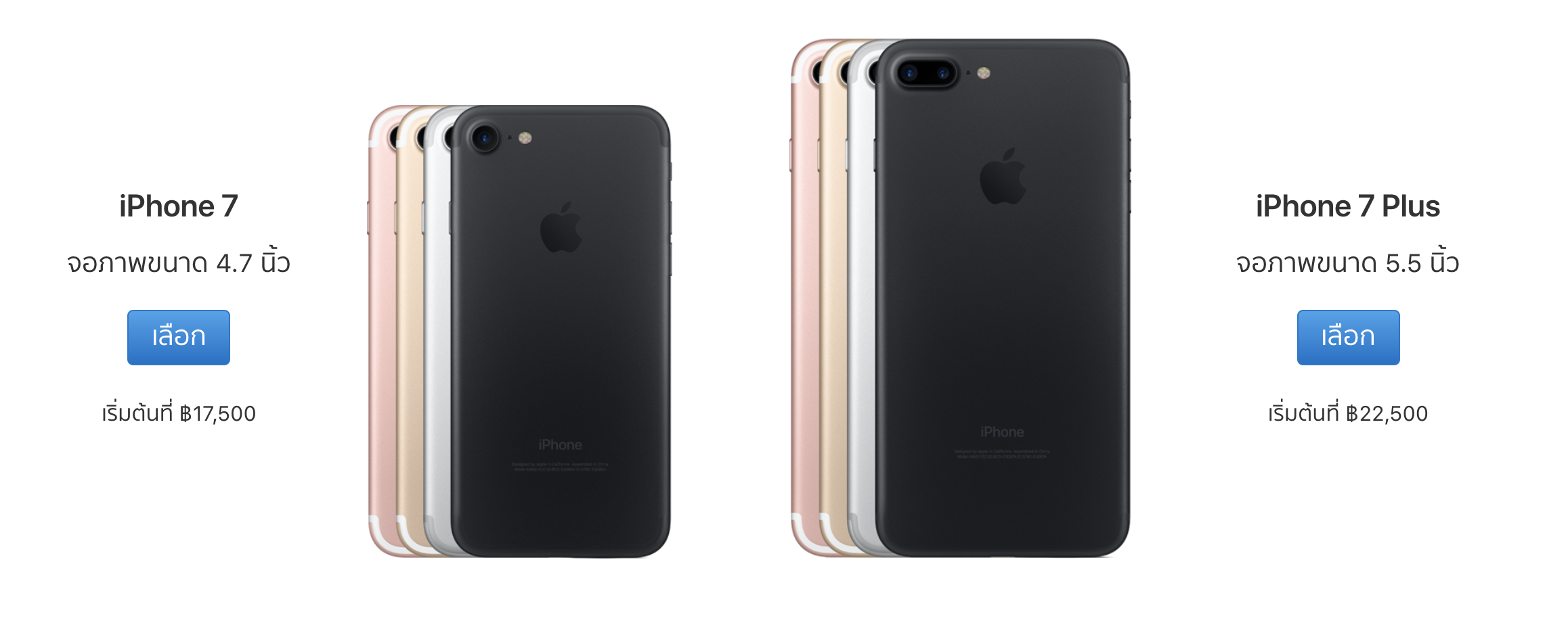 ขณะที่ราคา iPhone 7 และ iPhone 7 Plus ที่ Apple Online Store ยังจำหน่ายในราคาเริ่มต้นที่ 17,500 บาท และ 22,500 บาท โดยสามารถผ่อน 0% นาน 10 เดือนกับบัตรเครดิตที่ร่วมรายการ
