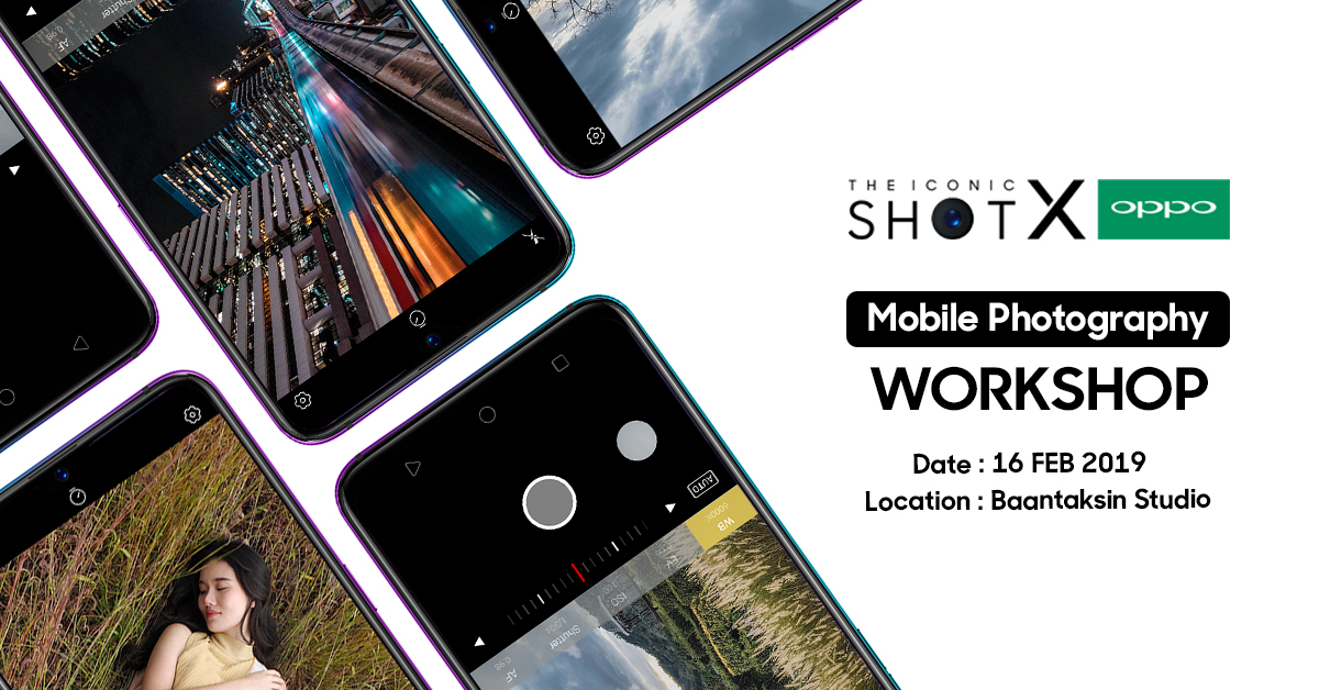 และใกล้ถึงเวลาแล้ว! สำหรับผู้ชนะกิจกรรม มีสิทธิได้เข้าร่วมกับกิจกรรมสุดเอ็กซ์คลูซีฟ ในงาน “THE ICONIC SHOT X OPPO” MOBILE PHOTOGRAPHY WORKSHOP ในวันที่ 16 กุมภาพันธ์นี้ ณ บ้านตากสินสตูดิโอ ซึ่งมีผู้เชี่ยวชาญด้านการถ่ายภาพทั้ง 3 ท่าน มาร่วมแชร์ประสบการณ์การถ่ายภาพ  พร้อมร่วมทำเวิร์คช็อปกับผู้เชี่ยวชาญแต่ละด้านที่มาพร้อมเทคนิคการถ่ายภาพด้วย OPPO R17 Pro ประกอบด้วย Model Portrait, Studio Low light, Mini Studio และ Nature