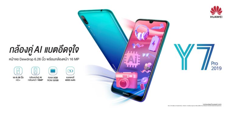 หัวเว่ยพร้อมวางจำหน่าย “HUAWEI Y7 Pro 2019” จัดเต็มทั้งหน้าจอไร้ขอบแบบหยดน้ำ กล้องหลังคู่ AI สุดฉลาด แบตอึด ในราคาสุดเร้าใจ เพียง 4,990 บาท ณ หัวเว่ย แบรนด์ช้อป และร้านตัวแทนจำหน่ายทั่วประเทศ
