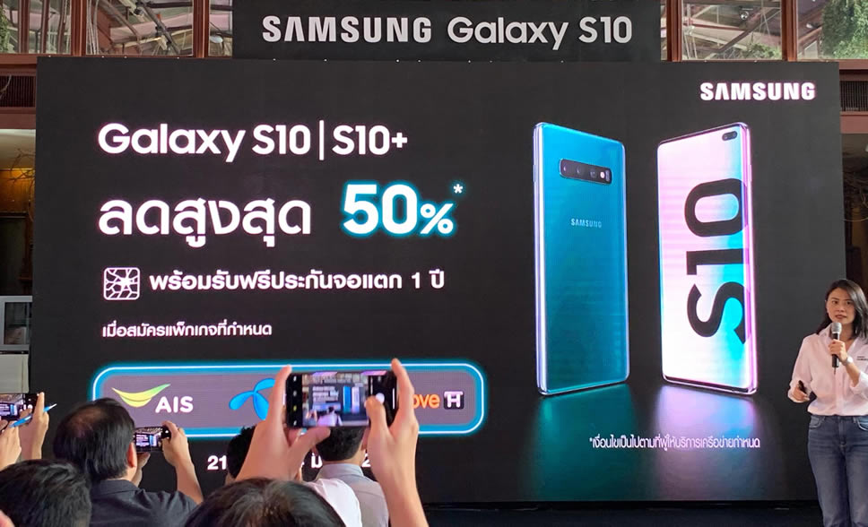 Samsung เปิดตัวสมาร์ทโฟน Galaxy S10 series ในประเทศไทยแล้ว และประกาศราคาออกมาครบทั้ง 3 รุ่น ได้แก่ Galaxy S10e, Galaxy S10 และ Galaxy S10+ พร้อมเปิดรับจองทันทีตั้งแต่วันนี้ ไปจนถึงวันที่ 4 มีนาคม ก่อนจะเริ่มวางจำหน่ายตั้งแต่วันที่ 8 มีนาคม 2562 เป็นต้นไป