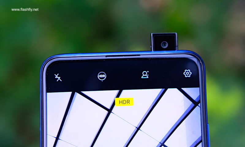 กล้องเซลฟี่แบบ Pop-up ให้ความละเอียดสูง 32 ล้านพิกเซล สามารถเลื่อนขึ้นอัตโนมัติ เมื่อต้องการใช้งาน และเลื่อนลงอัตโนมัติเช่นเดียวกัน โดยมีความเร็วในการเลื่อน 0.46 วินาที ผ่านการทดสอบด้านความแข็งแรงถึง 300,000 ครั้ง