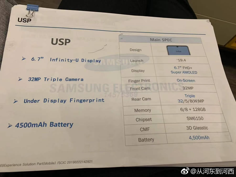 Samsung Galaxy A60 จะใช้ชิปประมวลผล Qualcomm Snapdragon 675 ความจำ RAM 6GB หรือ 8GB จับคู่กับ ROM 128GB ทำงานบนพื้นฐาน Android Pie สวมทับด้วย Samsung One UI ความจุแบตเตอรี่ 4,500mAh